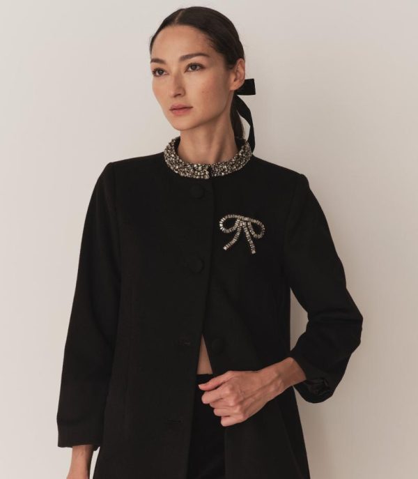 To add a touch of sparkle to any look, our Jobelle Brooch is a grosgrain bow adorned with crystals. With a pin back closure, it’s easily fastened to the lapel of a coat, your favorite blouse, or a holiday dress.