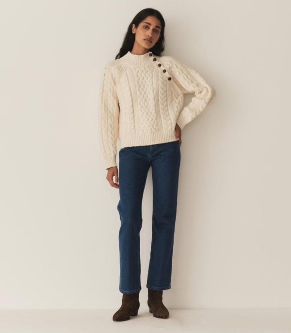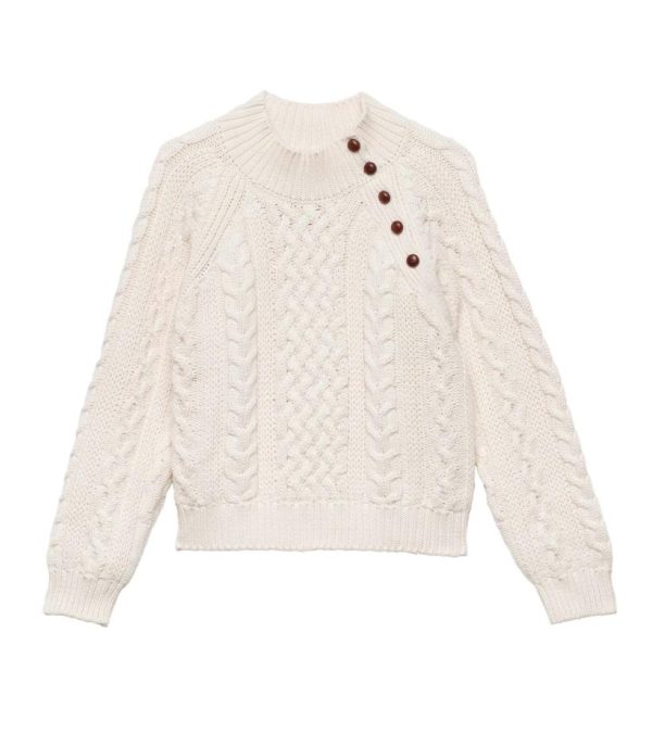 Drawing inspiration from classic ‘60s fisherman’s knits, the Norwood Sweater—crafted from hefty 100% organic cotton—features a mock neck, a boxy cut, an alternating allover cable design, and a line of braided faux leather buttons along the raglan seam.